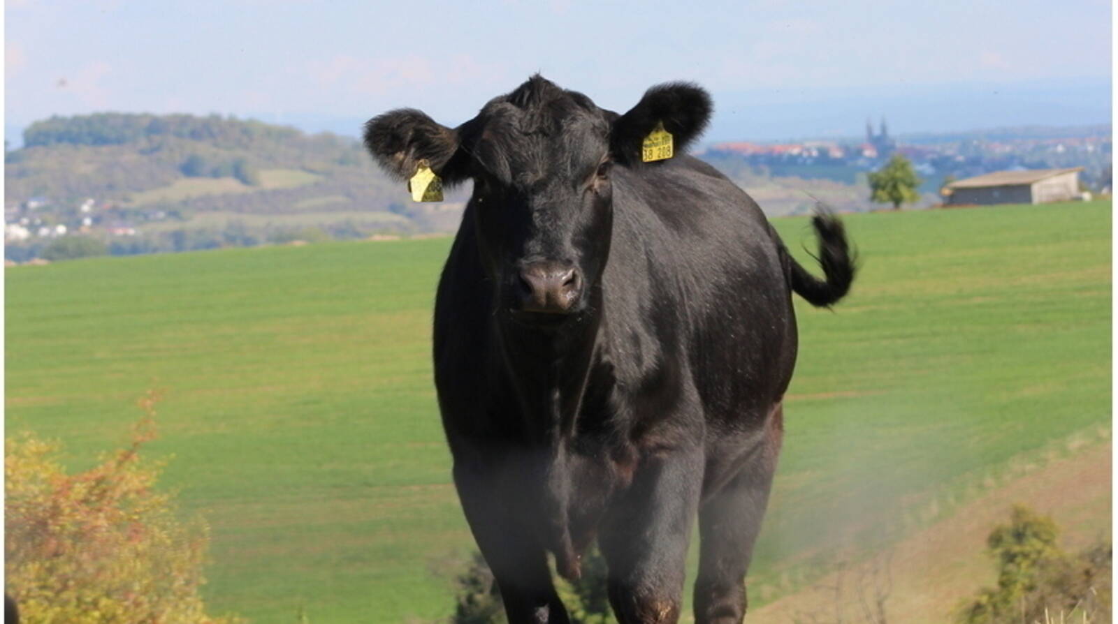 Gut Ding will Weile haben: Wir geben unseren Tieren, hier unserem 2 Jahre und 5 Monate altem Angusbulle etwas sehr Kostbares: Zeit. Fleisch mit Charakter und Geschmack braucht Zeit, um Aroma zu gewinnen und intramuskuläres Fett aufzubauen. Die Fütterung erfolgte dabei ausschließlich mit auf dem Betrieb erzeugten Futtermitteln.