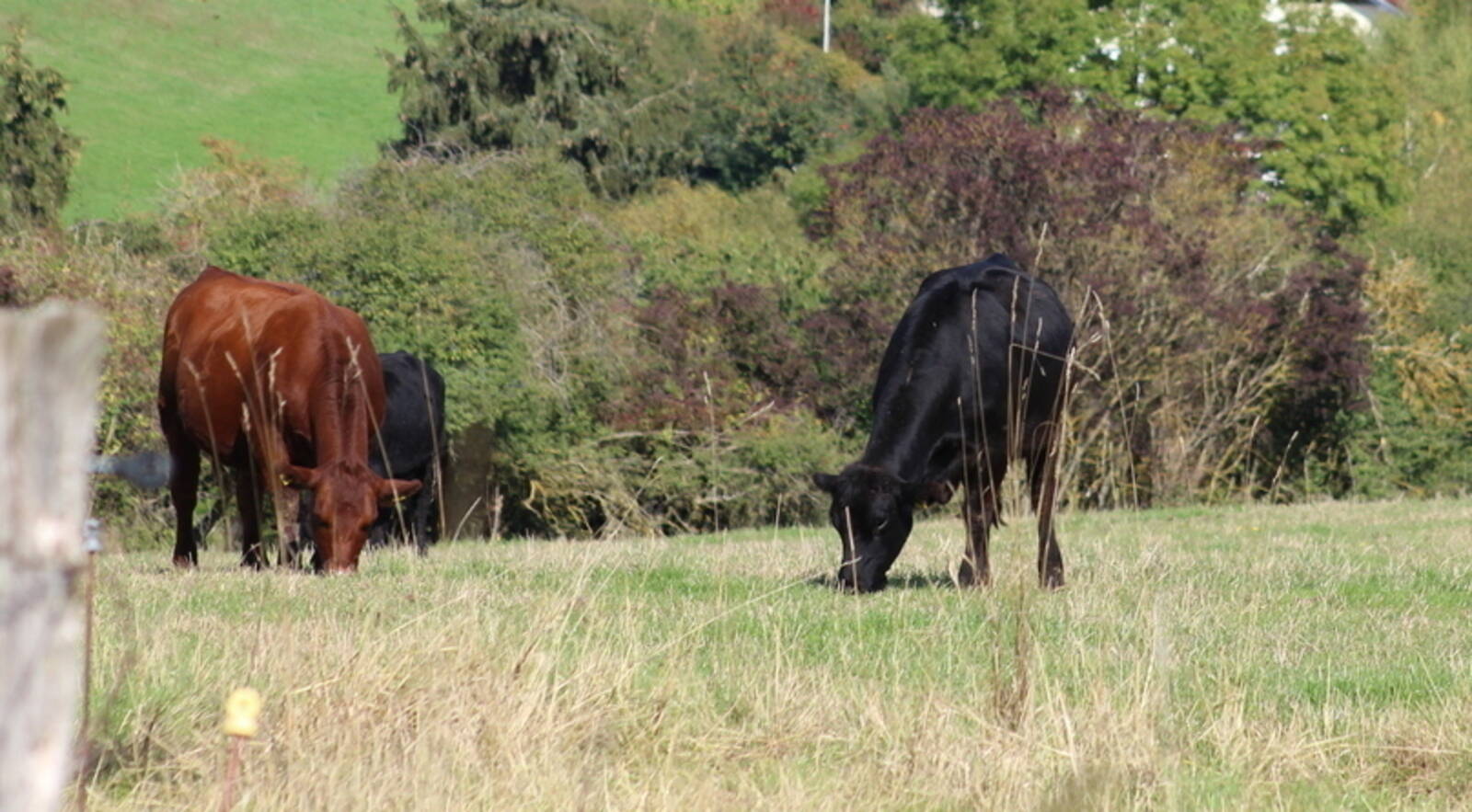 Marco hat den Betrieb im Jahr 2022 von seinem Vater übernommen. Mit dem Generationenwechsel haben uns die Milchkühe aus arbeitstechnischen und wirtschaftlichen Gründen verlassen. Bereits vorher fragten wir uns: wie können wir die Ressourcen, die die Natur uns zur Verfügung stellt, optimal weiternutzen? Unser Ziel ist dabei ein möglichst geschlossener, umwelt-verträglicher Betriebskreislauf. So kamen wir, Valerie und Marco, auf die Idee, eine Mutterkuhherde der Rasse Angus aufzubauen und kauften im Herbst '20 unseren ersten Angus Bullen Hektor. Seitdem befindet sich unsere Mutterkuhherde im Aufbau.